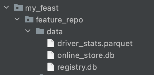 먼저 pycharm을 통해 새 프로젝트를 하나 만들고 feast를 init하면 프로젝트 내에 아래와 같이 feature_repo가 생성된다.