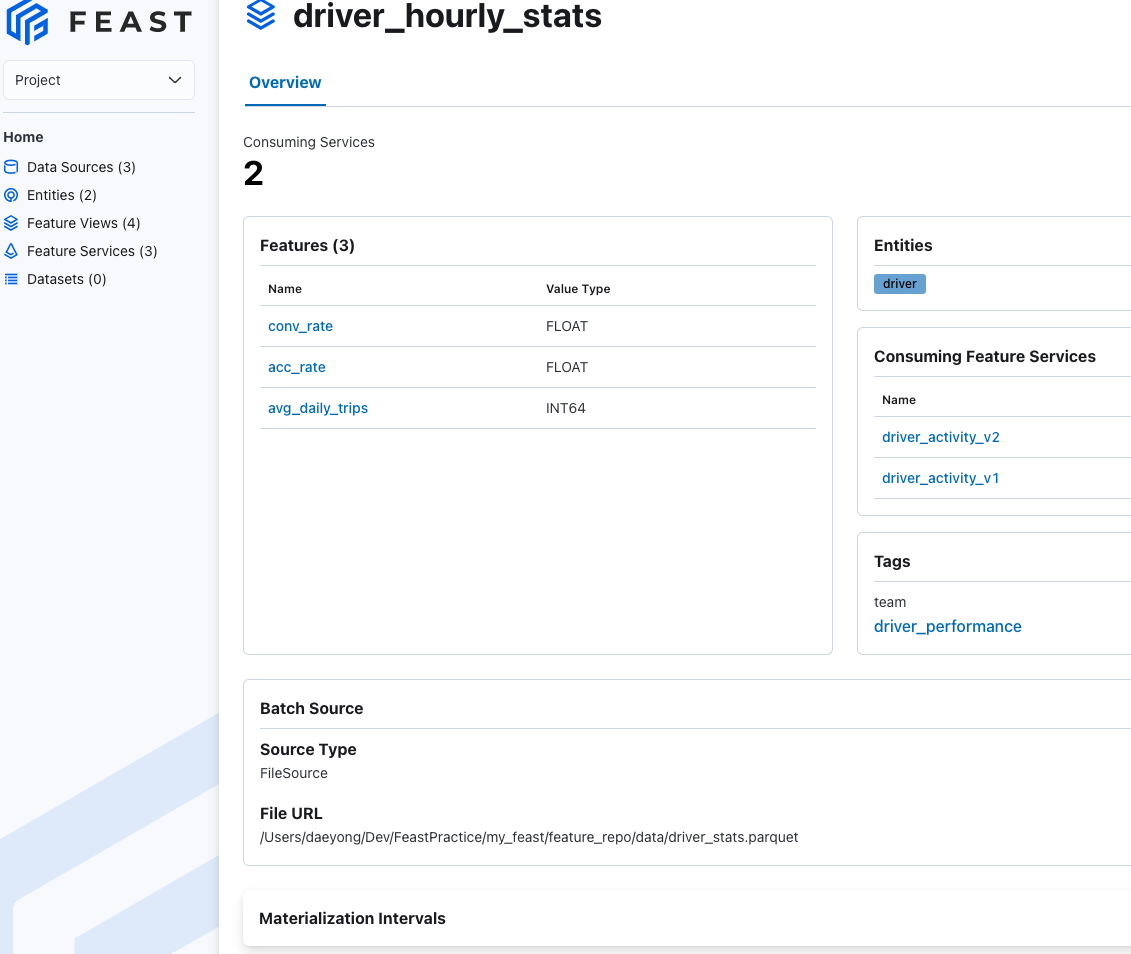 위에서 정의한 Feature View (driver_houlry_stats) 가 잘 보인다.