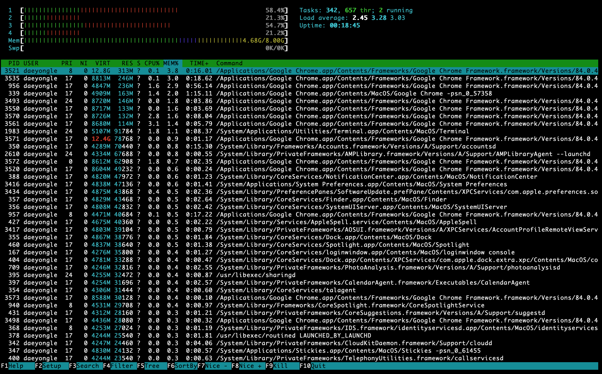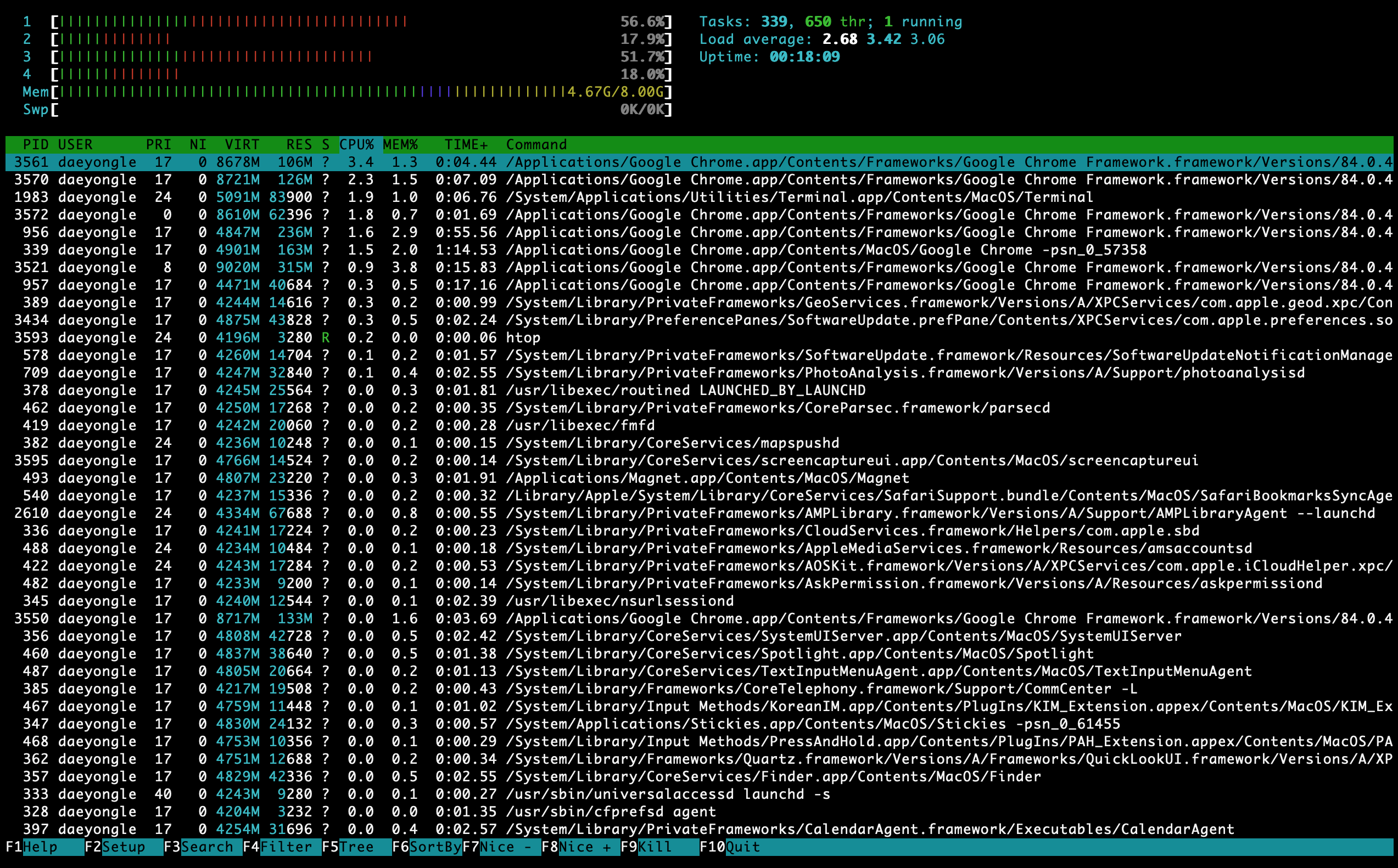 기본적으로 설치되어 있는 top보다 직관적이고 프로세스를 모니터링하기 편하다.